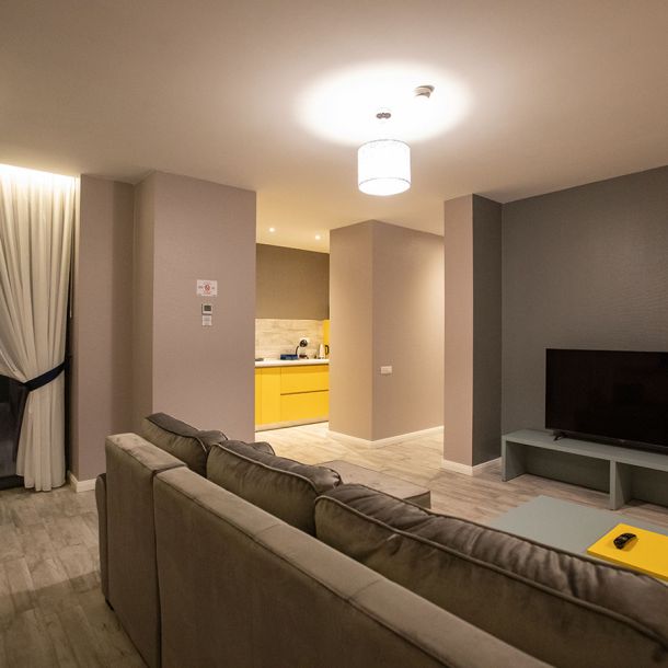 Apartamentul are un dormitor prevazut cu pat kingsize, o bucatarie open space, doua bai moderne si o zona de living spatioasa ce include o canapea extensibila pentru a gazdui pana la 4 persoane.