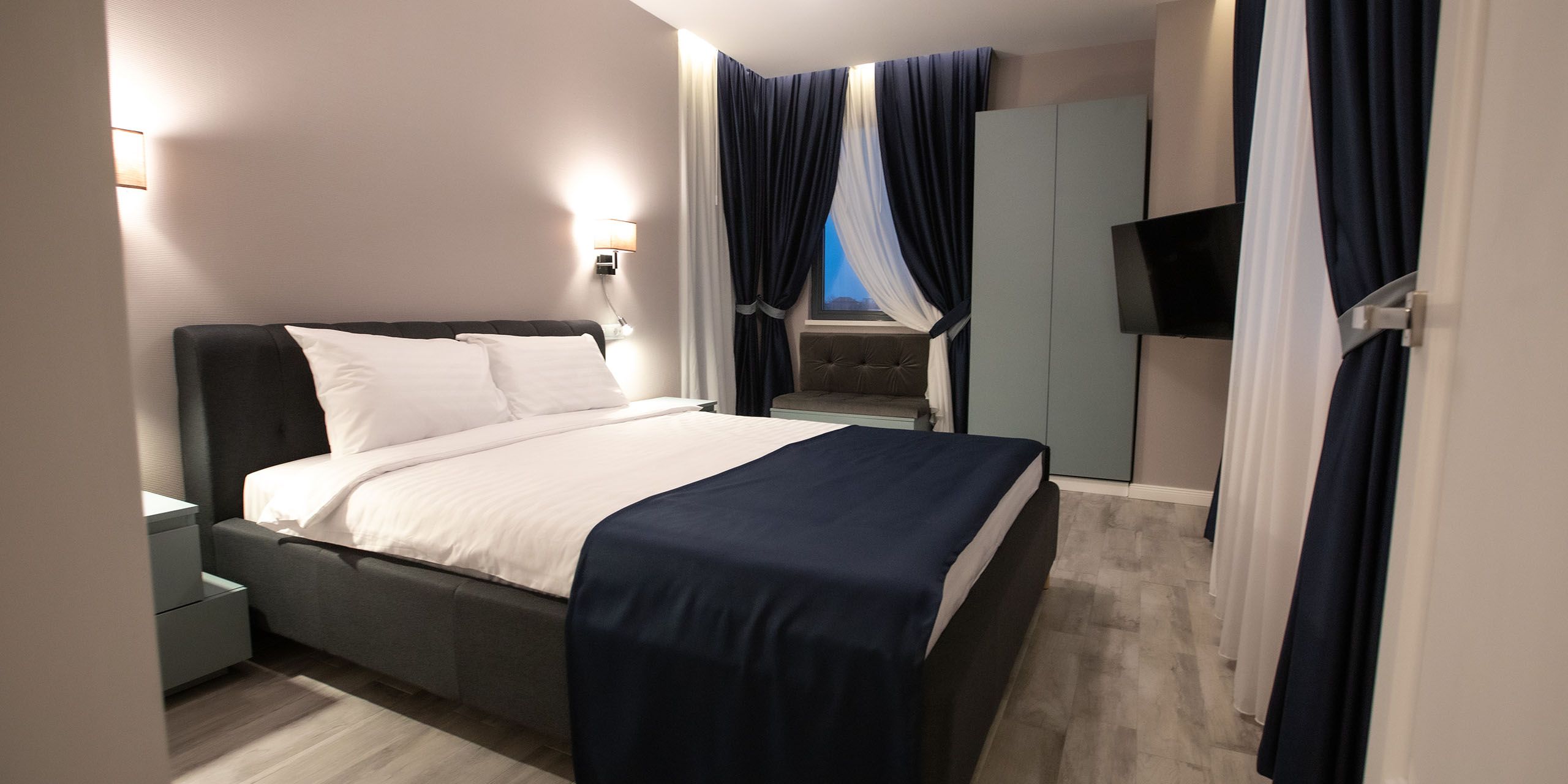 Ferestrele mari ofera multa lumina naturala si vedere la imprejurimi. In plus, apartamentul are un birou, ceea ce il face o alegere excelenta pentru cei care se afla in calatorii de afaceri sau pur si simplu lucreaza de acasa.